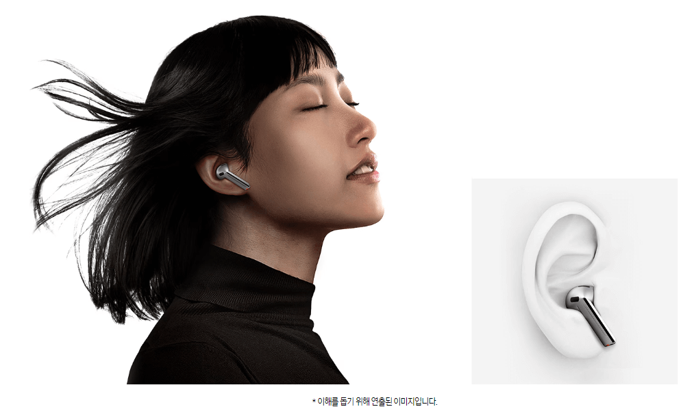 ▶ 갤럭시 버즈 3는 오픈형 디자인을 가지고 있고 이 디자인은 귀에 편안하게 맞으며, 일반적으로 환경 소음을 자연스럽게 통과시켜 사용자가 주변 환경을 인식할 수 있게 합니다.